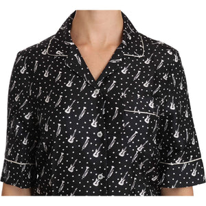 Dolce & Gabbana Black GuitarTrumpet Print Silk Shirt Top