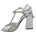 Dolce & Gabbana Silver Crystals T-strap Sandals Leather Shoes