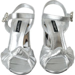 Dolce & Gabbana Silver Lambskin Leather Heels Sandals Shoes