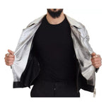 Dolce & Gabbana Silver Leather Biker Coat Lambskin Jacket