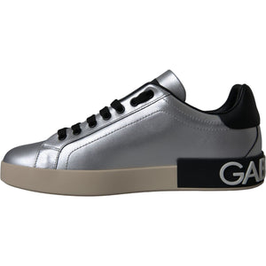 Dolce & Gabbana Silver Portofino Calf Leather Sneakers Men Shoes