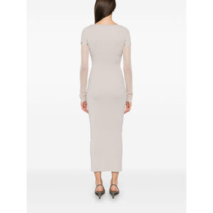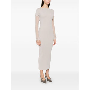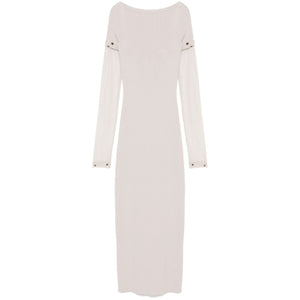 taupe detachable sleeves boat neck short sleeves Knitted long dress Size and Fit - This piece fits true to size. We recommend you get your regular size. Model is 1,75m / 5ft 8in wearing size S