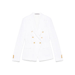 white double-breasted button fastening shoulder pads chest welt pocket two side flap pockets Cotton single-breasted jacket Size and Fit - This piece fits true to size. We recommend you get your regular size. Model is 1,75m / 5ft 8in wearing size 40 (IT)