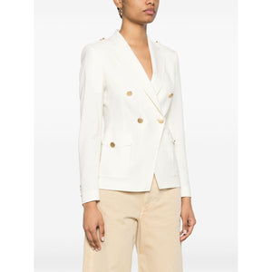 white double-breasted button fastening shoulder pads two side flap pockets rear central vent Wool double-breasted jacket Size and Fit - This piece fits true to size. We recommend you get your regular size. Model is 1,75m / 5ft 8in wearing size 40 (IT)
