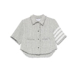 medium grey front button fastening two chest patch pockets frayed edge signature 4-Bar tab Cotton blend shirt