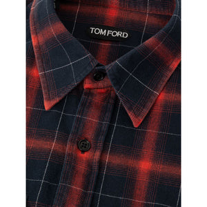 Tom Ford men’s checked shirt. Cotton blend model with checked pattern in shades of red and black. Front button closure, classic collar and front pockets with flap and button. Regular fit.