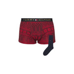 The Tommy Hilfiger TRUNK & SOCK SET UM0UM01996 is the ideal choice for those seeking both comfort and style in their underwear. This practical gift box includes coordinated trunk boxers and socks, both featuring an elegant graphic pattern and iconic brand details. Made from soft jersey fabric composed of 95% cotton and 5% elastane/lycra, they offer a stretchy, comfortable fit that adapts perfectly to your body. The trunk showcases the classic Tommy Hilfiger logo waistband, while the socks are designed to match for a refined, cohesive look. Perfect as a gift thanks to the festive packaging, this set is ideal for anyone who appreciates high-quality underwear from a trusted and trendy brand.