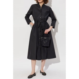 Black, cotton, model with belt, front buttoning closure, stand-up collar, 3/4 sleeves, straight hem and medium length. Cotton shirt dress Size and Fit - This piece fits true to size. We recommend you get your regular size. Model is 1,75m / 5ft 8in wearing size 4 (US)