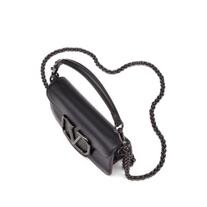 black calf leather maxi VLogo Signature foldover top with magnetic fastening chain-link shoulder strap internal slip pocket Locò small leather shoulder bag Size and Fit - Width 7,87 in / 20 cm