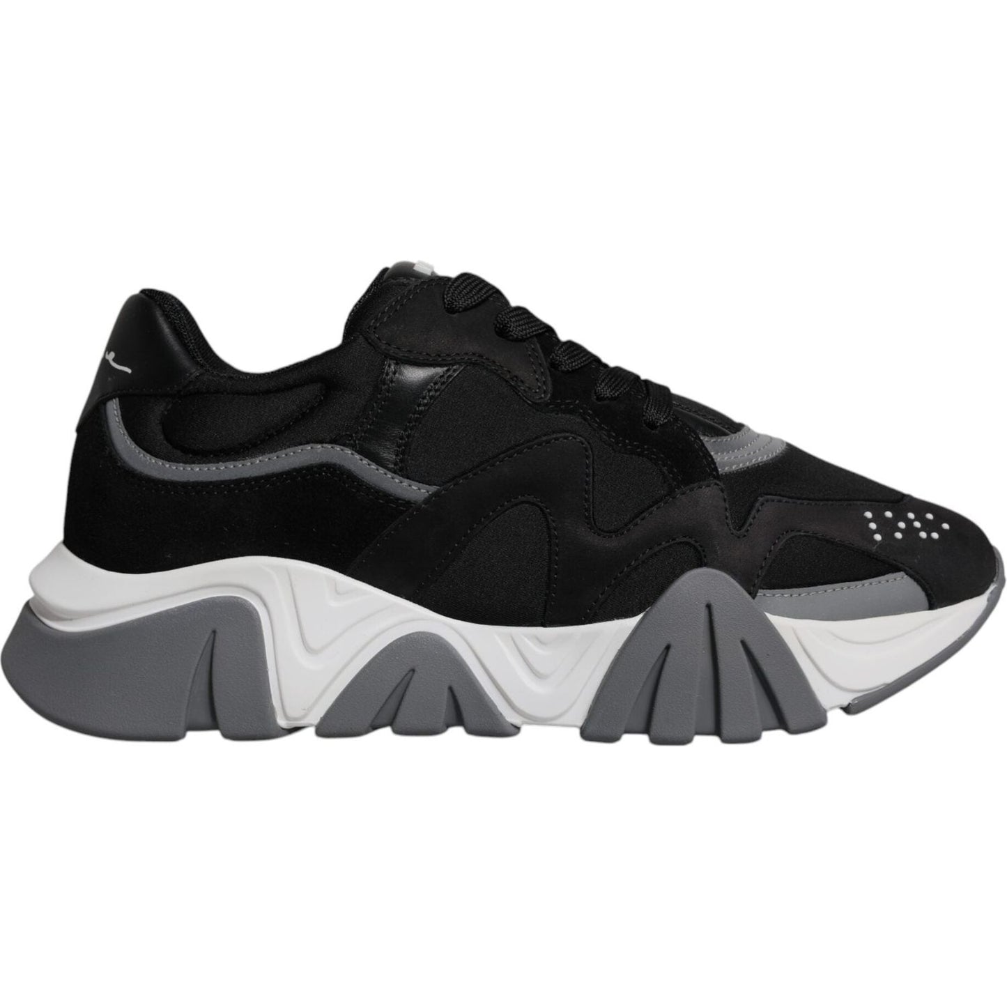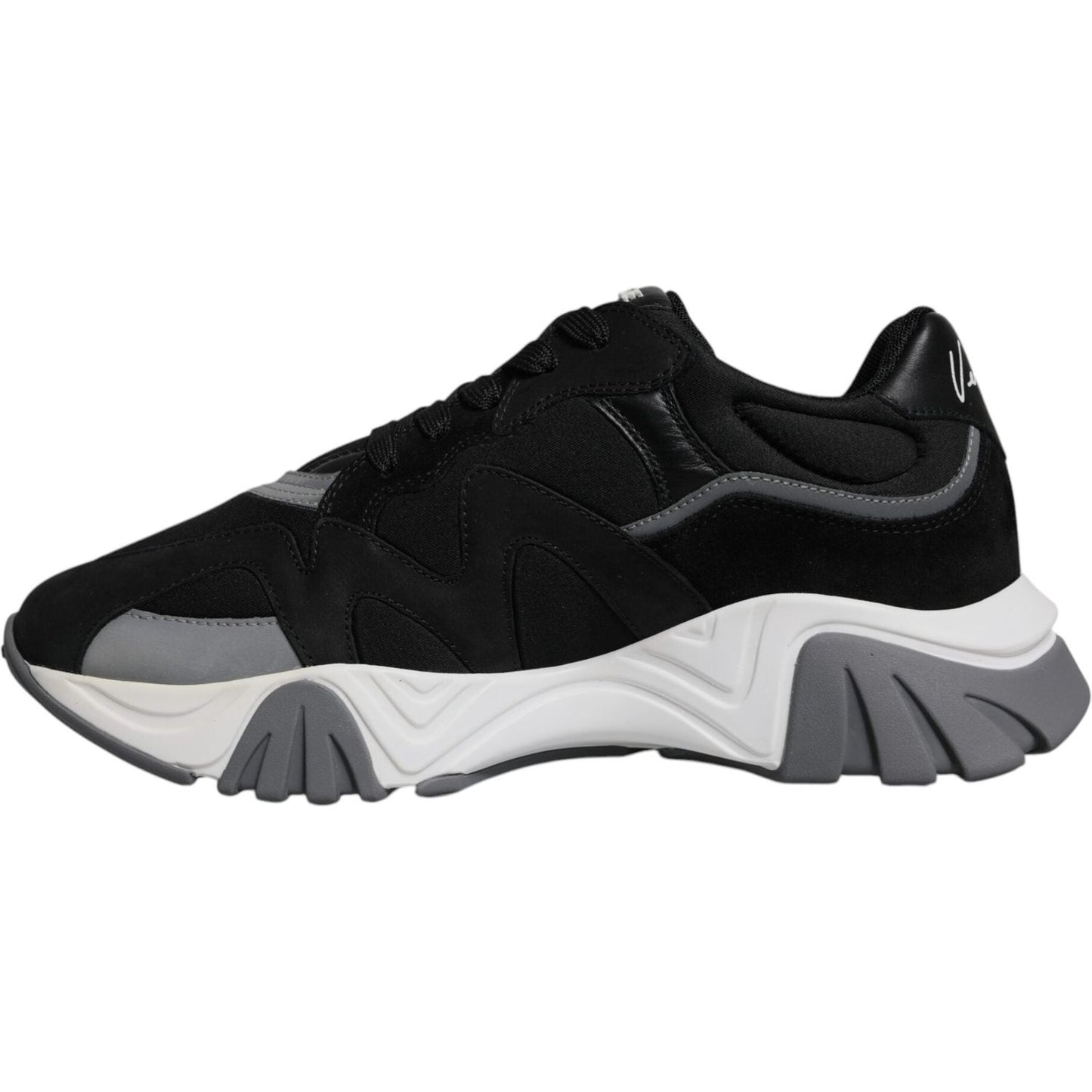 Versace Black Leather Neoprene Chunky Low Top Sneakers Squalo Shoes