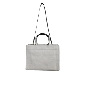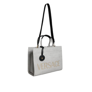 Versace White Top Handle Canvas Leather Logo Crossbody Tote Bag