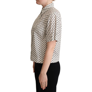 Dolce & Gabbana White Dotted Collared Blouse Shirt