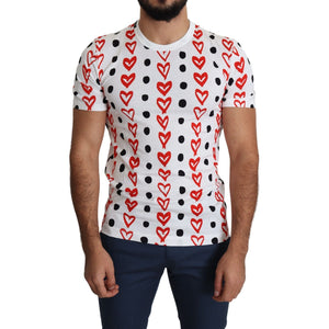 Dolce & Gabbana White Hearts Print Cotton Men Top T-shirt