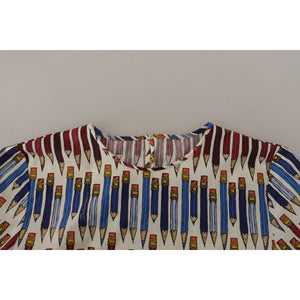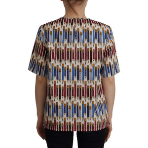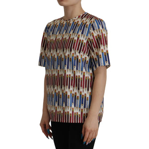 Dolce & Gabbana White Pencil Print Cotton T-shirt Blouse
