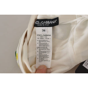 • Dolce & Gabbana White Sunflower Print Sheath Midi Silk