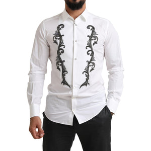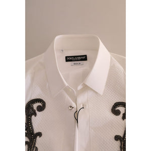 Dolce & Gabbana White Tuxedo Slim Fit Baroque Shirt
