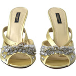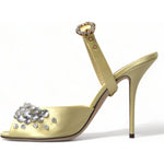 Dolce & Gabbana Yellow Satin Crystal Mary Janes Sandals