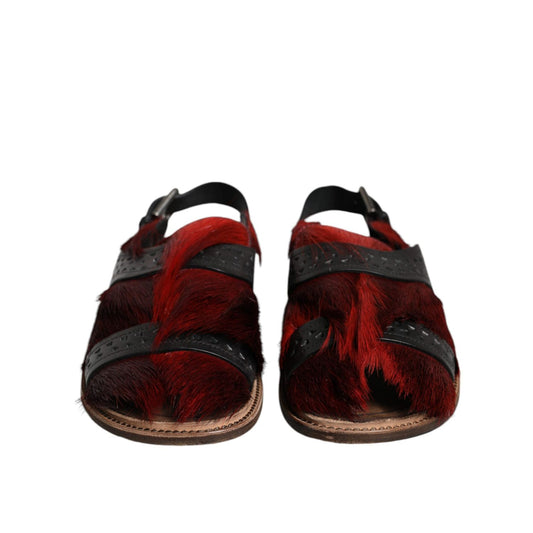 Dolce & Gabbana Black Red Gazelle Hair Leather Sandals Shoes