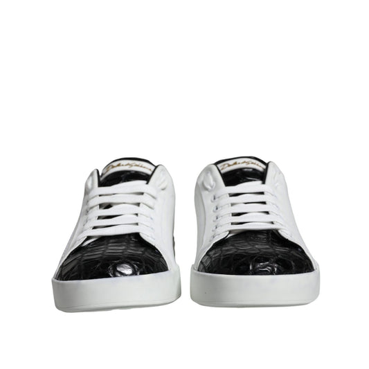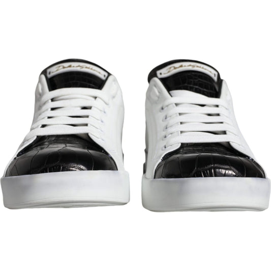Dolce & Gabbana Black Leather Logo Portofino Sneaker Shoes