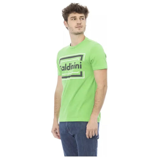 绿色棉质 T 恤,正面有别致印花图案