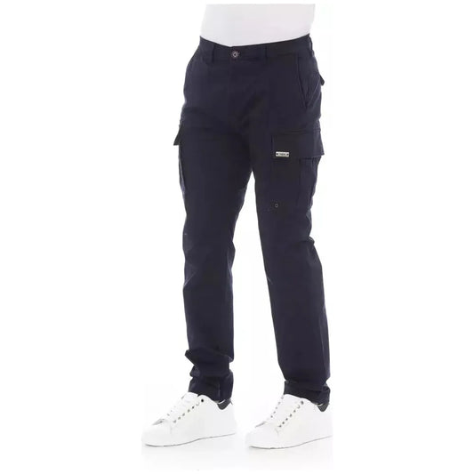 正面印有优雅图案的时尚蓝色棉质 T 恤