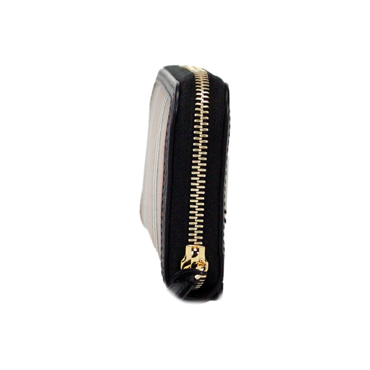 Ellerby 黑色皮革标志性条纹帆布拉链长款钱包