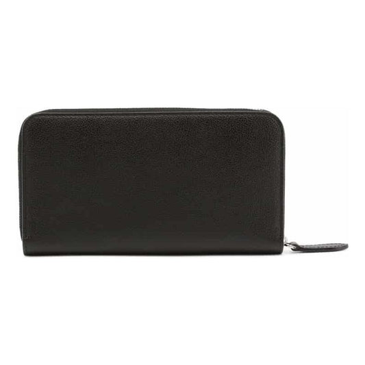 Luna 黑色粒面皮革 House 格纹帆布零钱包按扣钱包