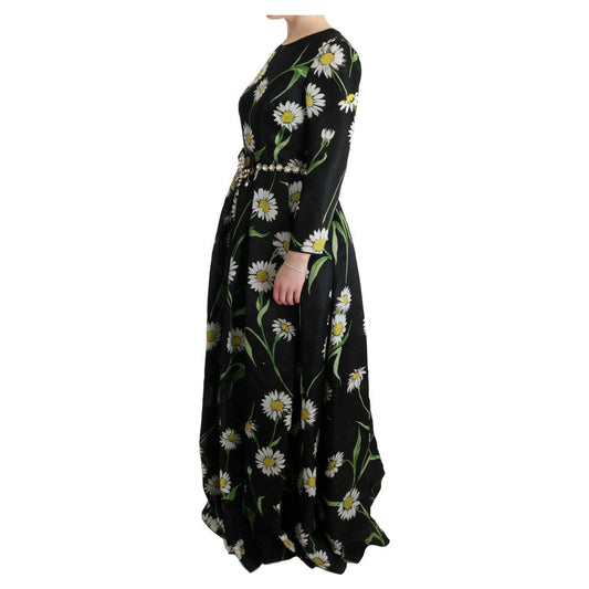 带向日葵印花和水晶的花卉长礼服