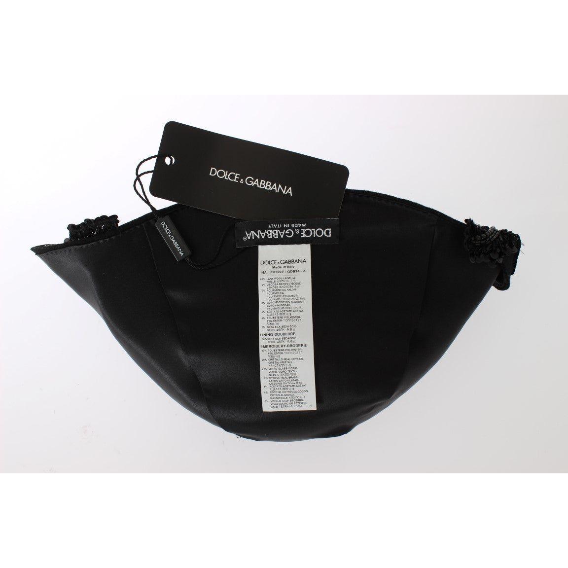 这款引人注目的黑色钟形帽是 Dolce & Gabbana 对奢华和时尚的执着追求的真正体现,让您步入永恒的优雅。这款帽子饰有一系列耀眼的水晶、亮片和西西里风格的胸针,是意大利制造的独一无二的珍品,可提升任何服装的档次。高品质材料的混合确保了舒适性和耐用性。这款迷人的头饰非常适合任何场合,彰显您的个性。