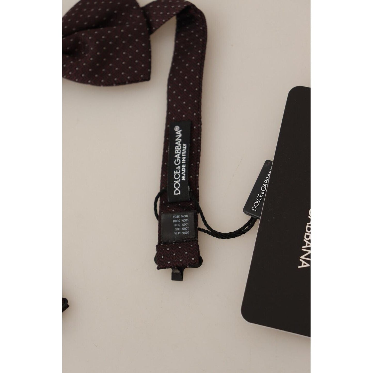 用这款绝对令人惊艳的 100% 正品 Dolce & Gabbana 领结来装饰您的西装。这款领结采用经典的棕色色调和精致的圆点图案,为任何服装增添奢华感。巧妙的钩形金属扣增加了实用性和现代感,体现了 Dolce & Gabbana 的卓越工艺。它是晚会和高级聚会的完美之选,是挑剔绅士的精致配饰。这款领结产自意大利,是品质和风格的标志。